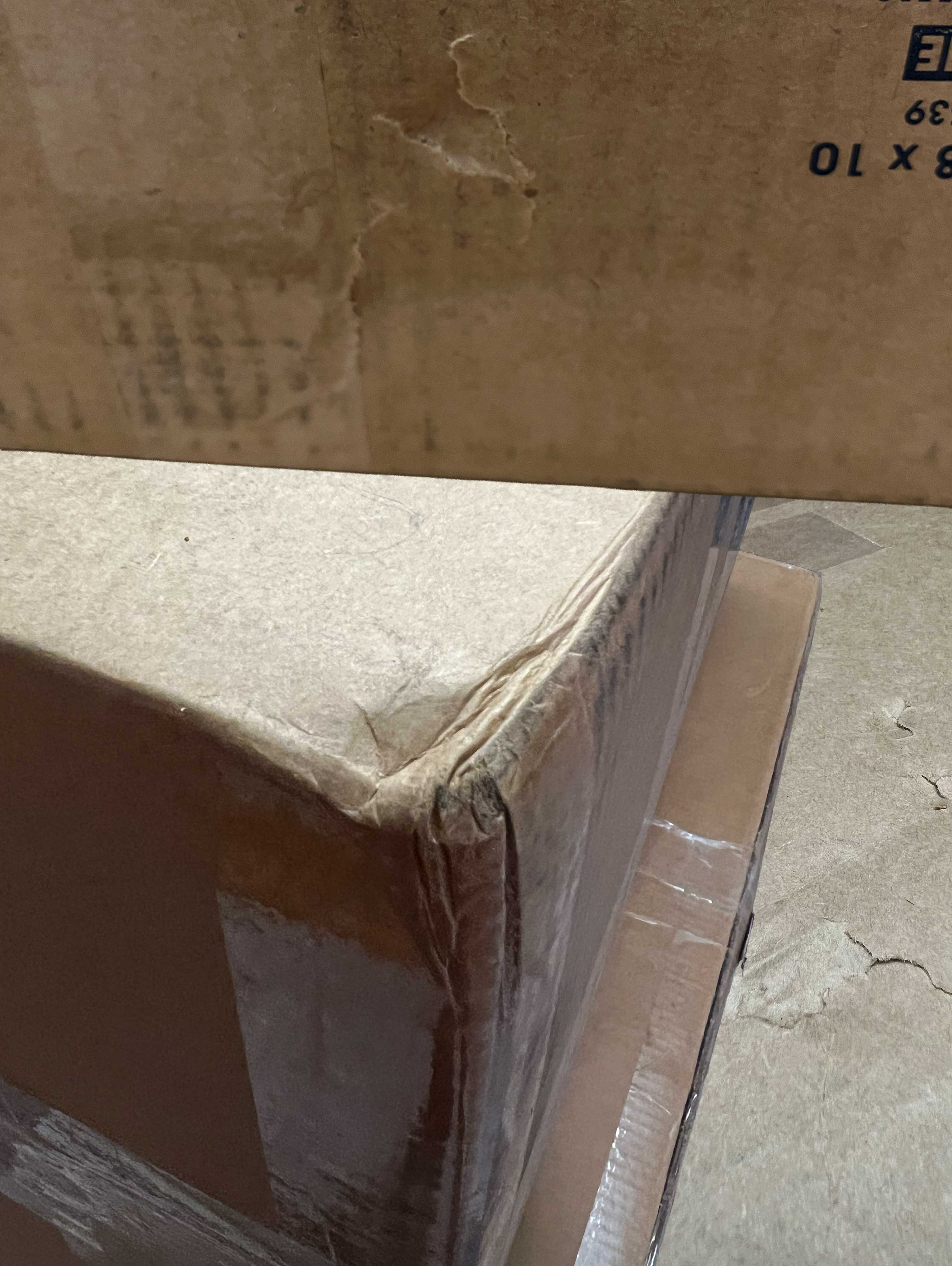 But notice how the corner damage returns. Weight = rough handling with the boxes. The reduction in handling size limits the extent of overall damage to the box.
