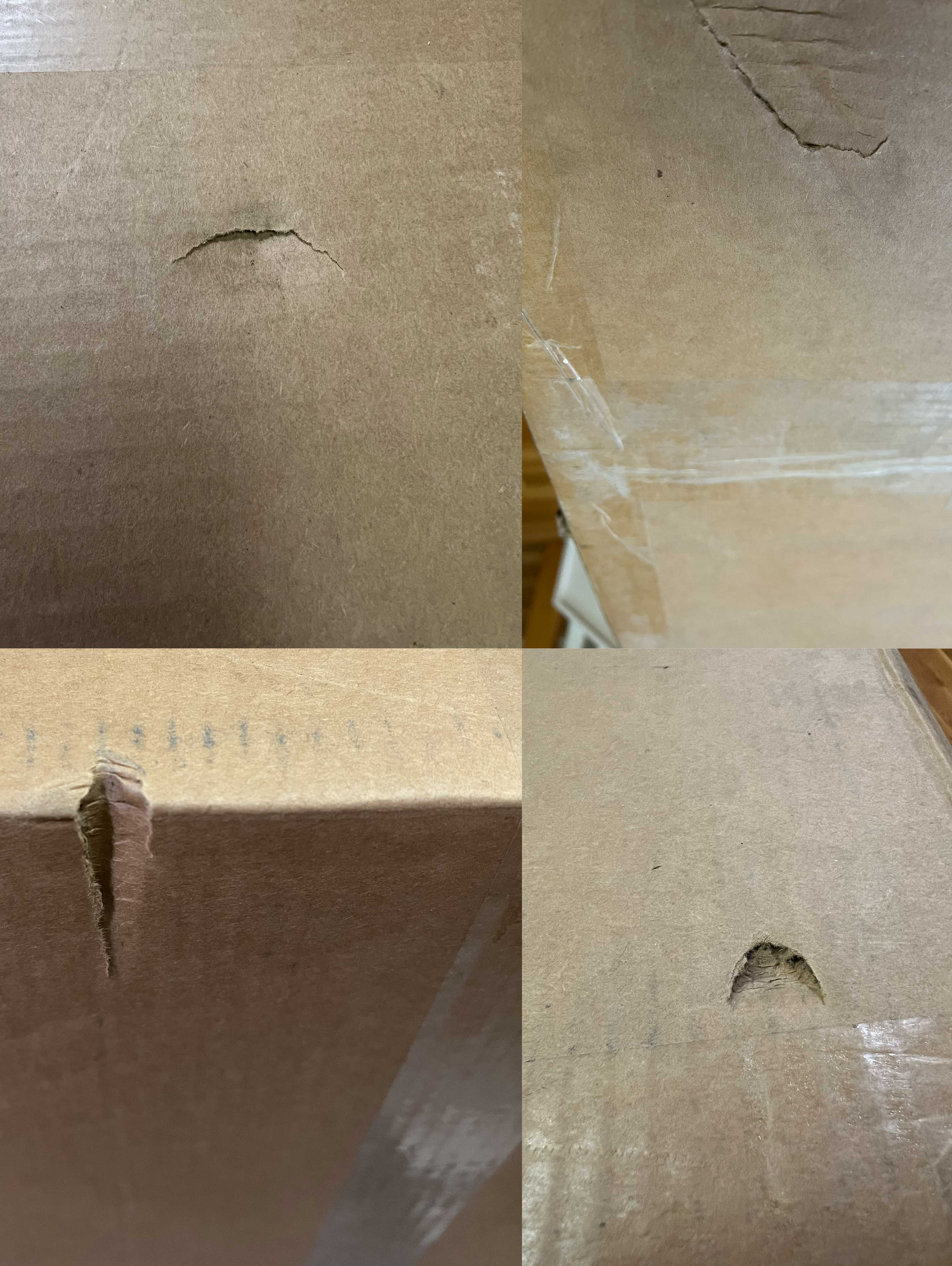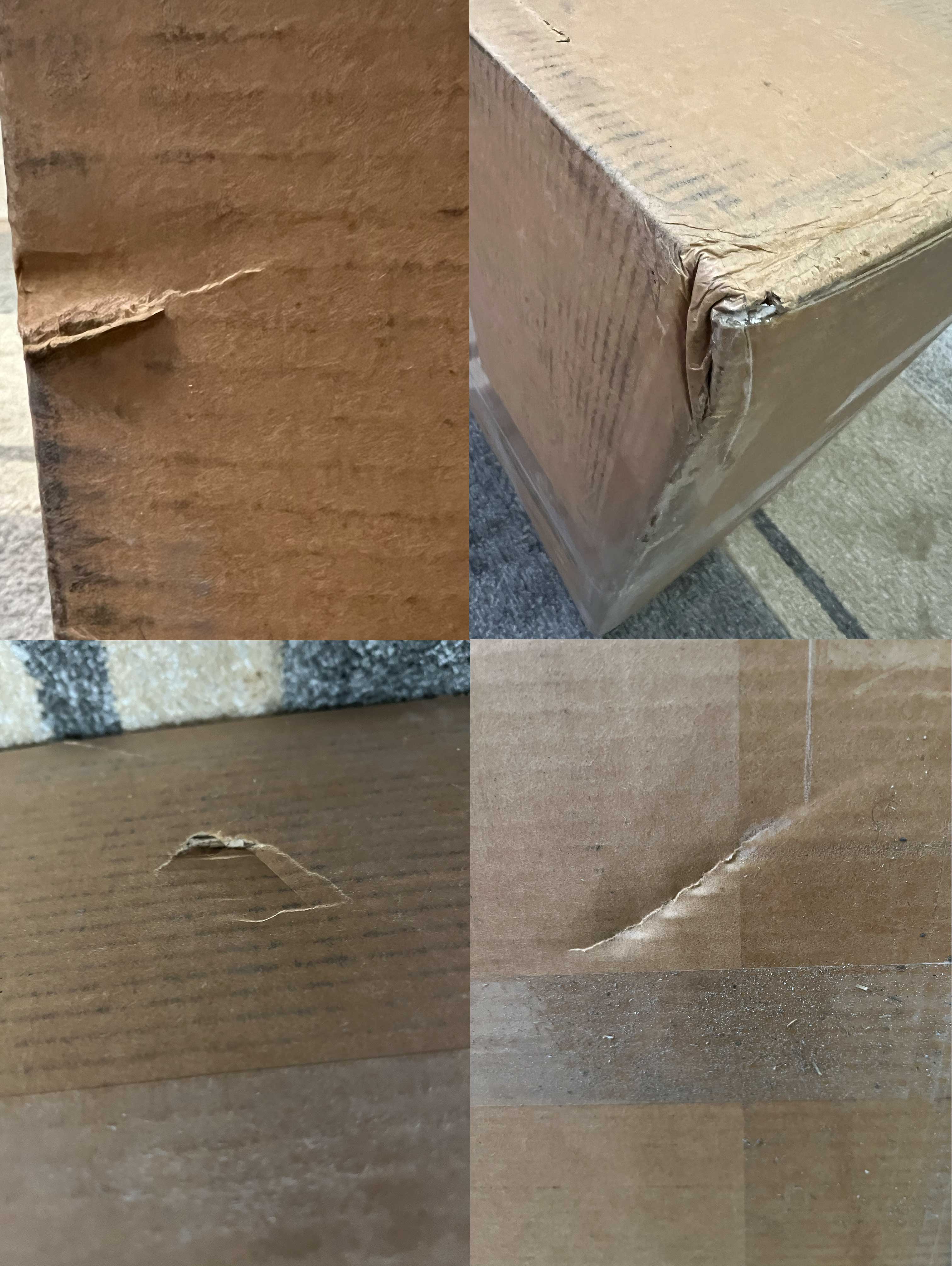 Instead of attaching 25 pictures for every box, here’s a collage of the speaker box showing many signs of rough handling. Nothing out of the ordinary and with due respect to my FedEx delivery driver Timothy who was a really nice guy working hard to travel through neighborhoods blocked by downed trees and icy hills. We do not expect boxes to be undamaged in shipment but it was clear the speaker box took the brunt of the greatest external abuse.