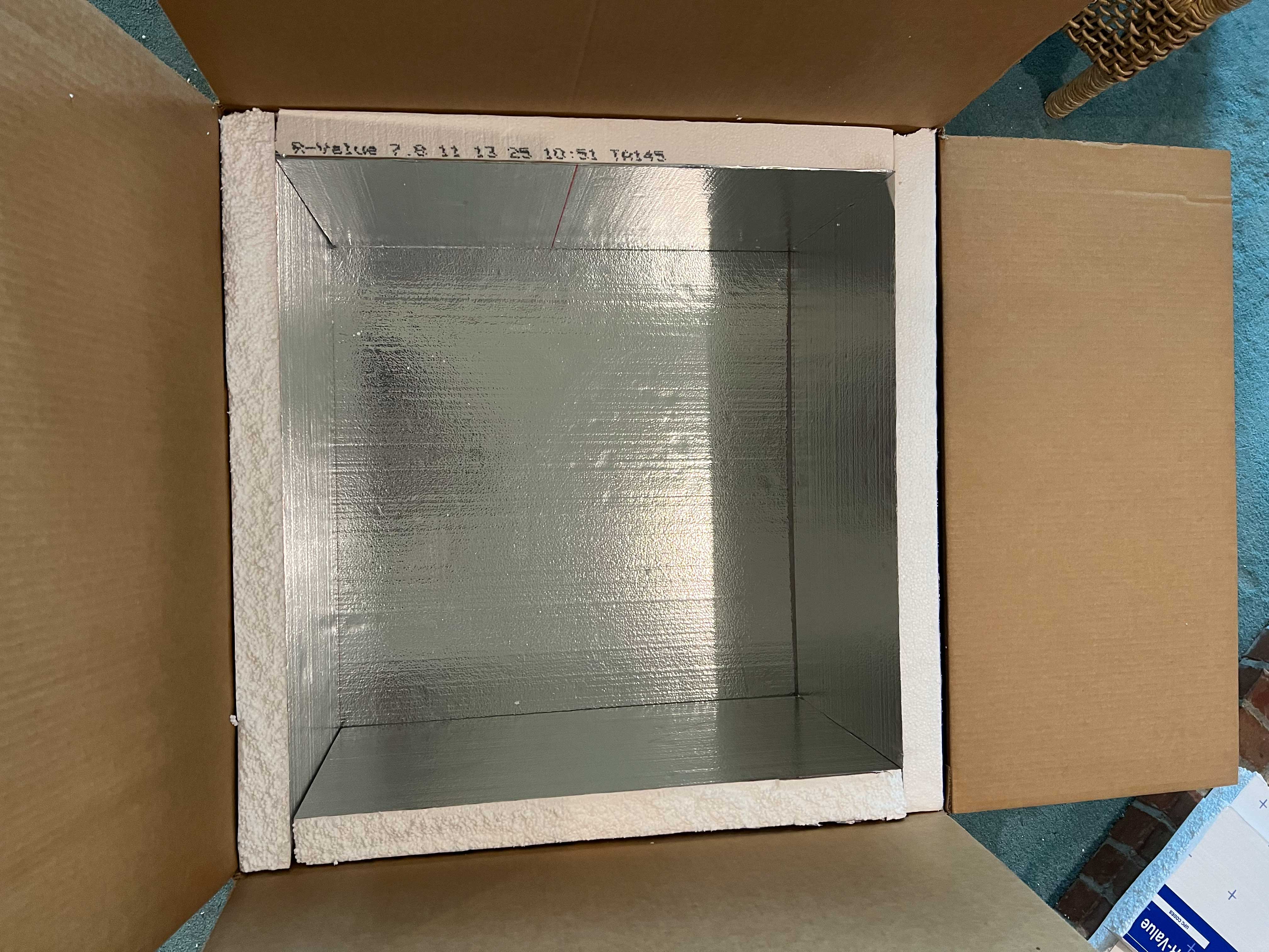 - Rigid insulation foam (I got the foil faced stuff). 2” is used to line the boxes but I went ahead and also got a sheet of 1.5” as well (just to fill smaller gaps where needed). This may be found at Home Depot.