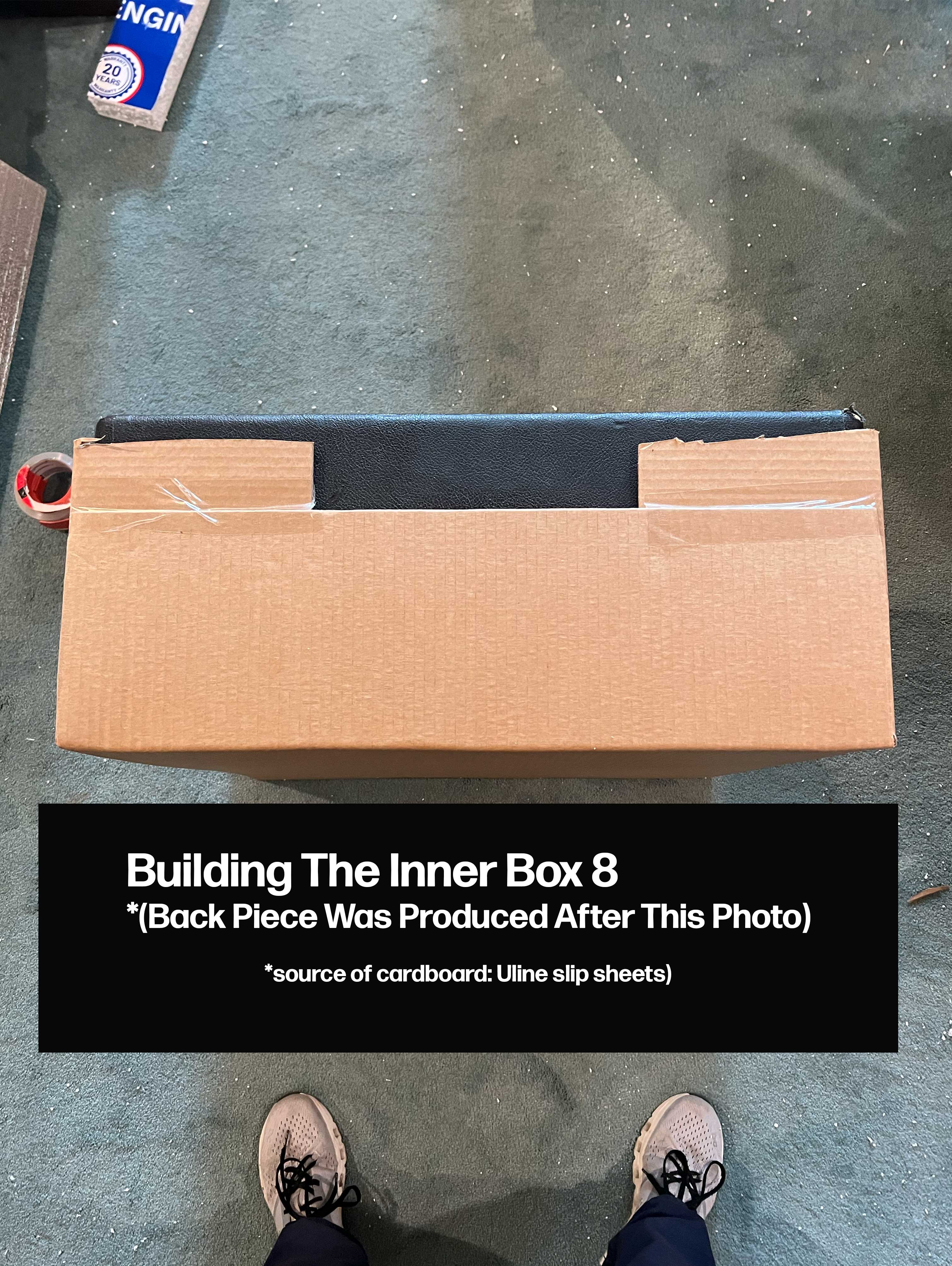 Because a couple extra cardboard slip sheets were given with the order (perhaps by accident), I went one step further and used a carton sizer (also from Uline) to fabricate a second box fitted around the cabinet itself. The idea was to keep foam from getting wedged in-between the grill cloth and baffle board (while also providing an extra layer of protection, now creating a foam box within a double-walled box for a cabinet that was also boxed. That's like triple boxed!).