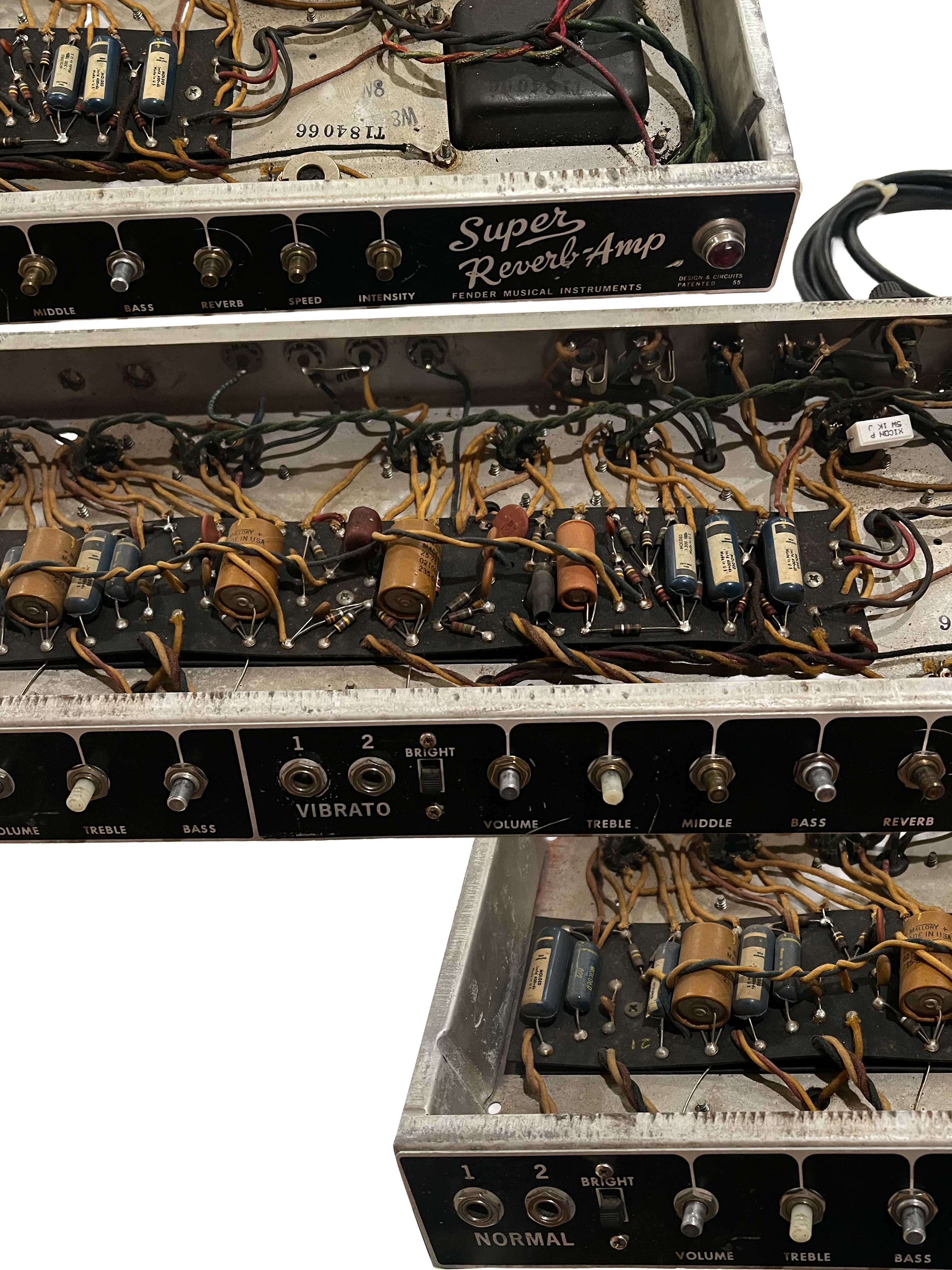 Since the amp is not clean enough to merit museum treatment and the ethics of re-stuffing electrolytic capacitors to command a higher resale value is open to debate, I have no intention of restuffing the original caps. This was purchased to remain my personal amp. But it was sure nice that Emerald City Guitars’ tech on call (Solderhaus) saved all the parts he removed. All were included with the original speakers in the resale.
