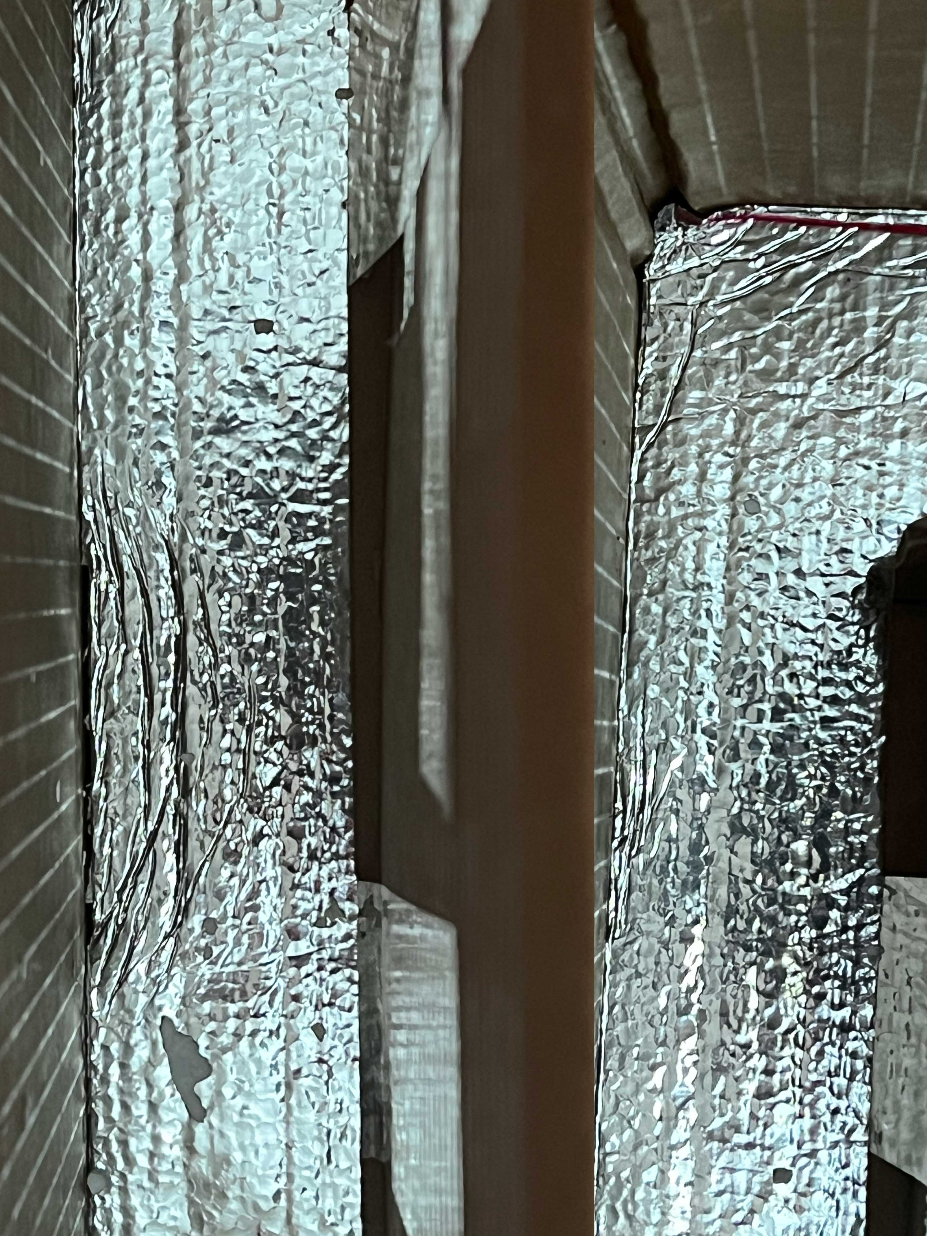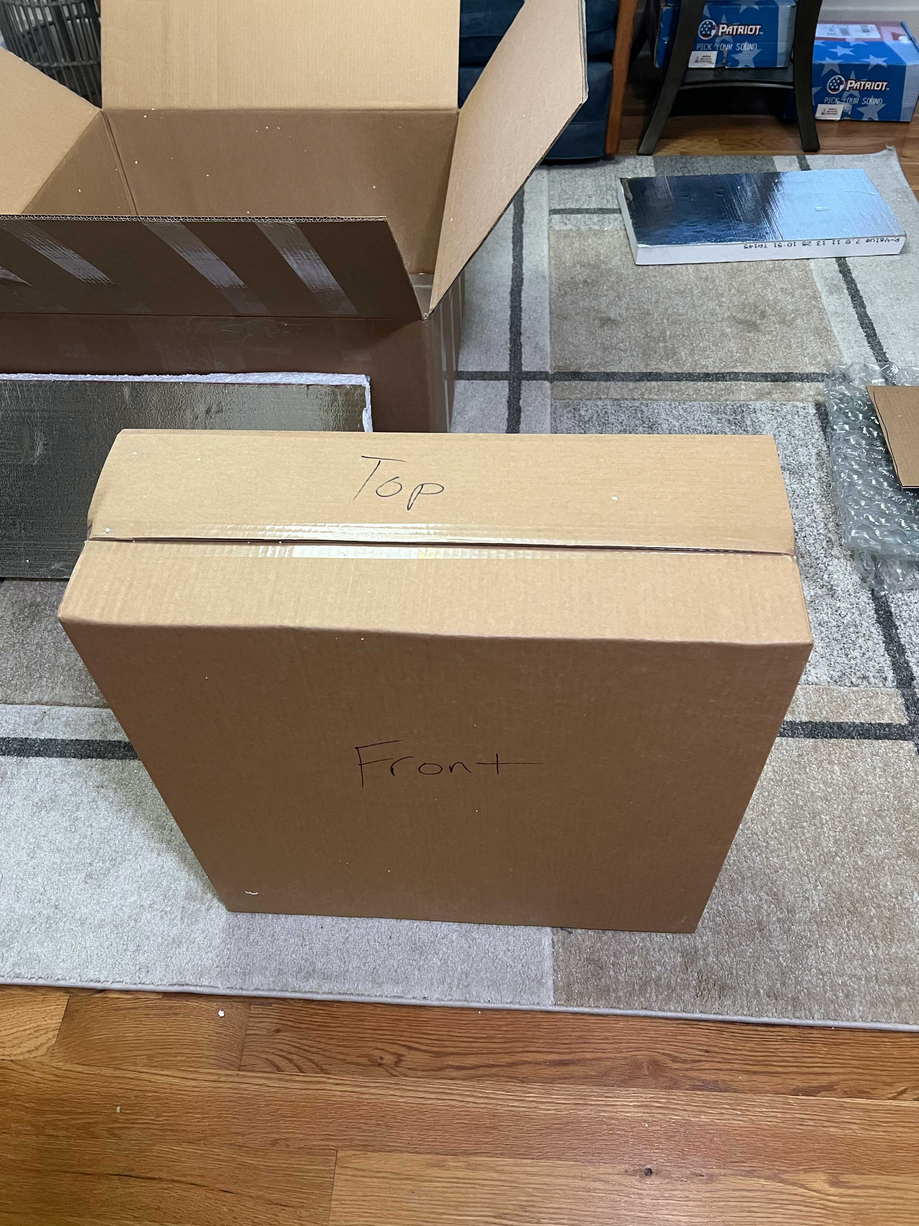 Looking at the bottom layer of foam below where the speakers had been, notice the indentation. The weight indented the foam instead of digging into the box and possibly pushing it out and apart. The foam indentations are exactly what we wanted and is something I’ll be referring to frequently in some detail throughout the rest of the unpacking. Bubble wrap leaves no trail of evidence of what happens in shipping. Foam insulation does though...