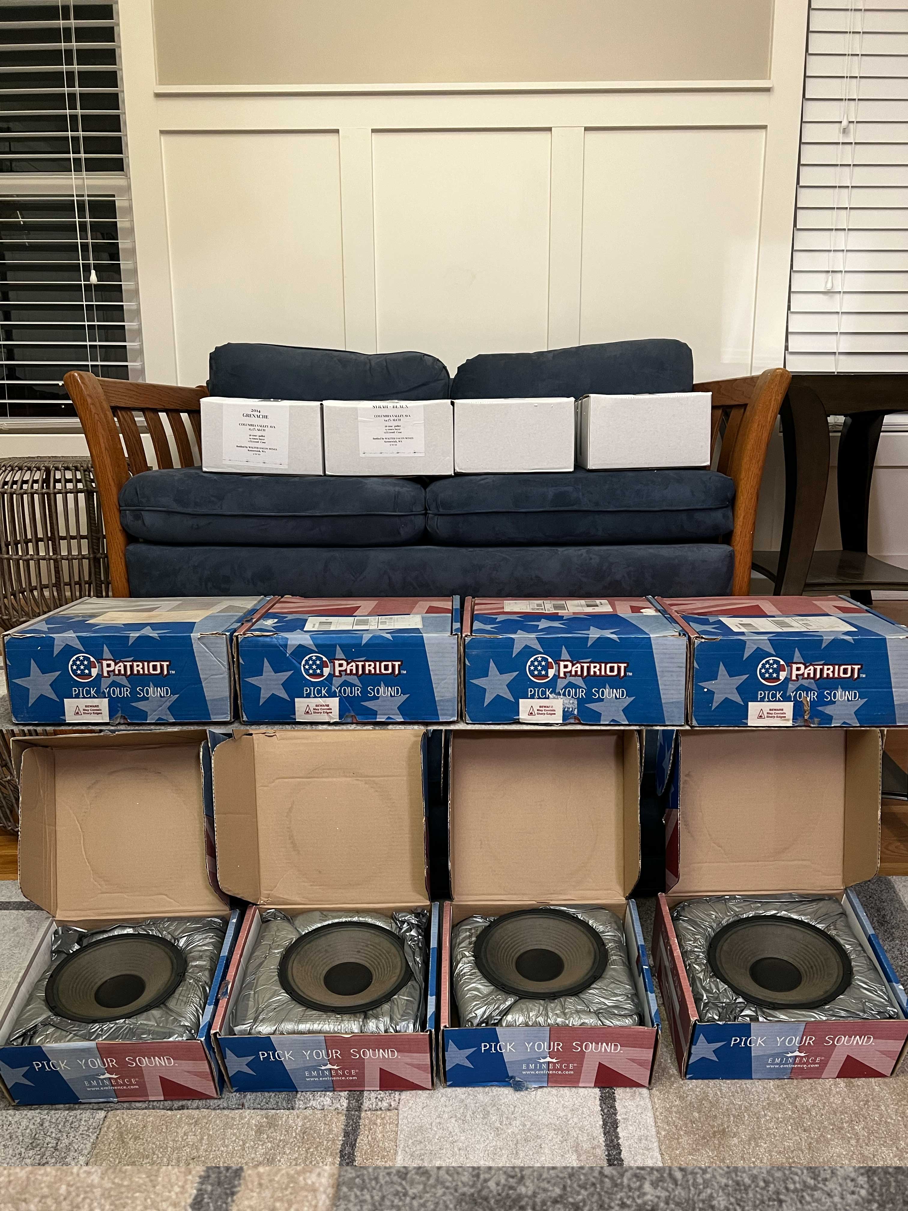 After removing all four speakers from the cabinet for shipping in Part III, that only left four Eminence boxes for eight total speakers, and I did not have any boxes as good as the ones Eminence ships their speakers in.