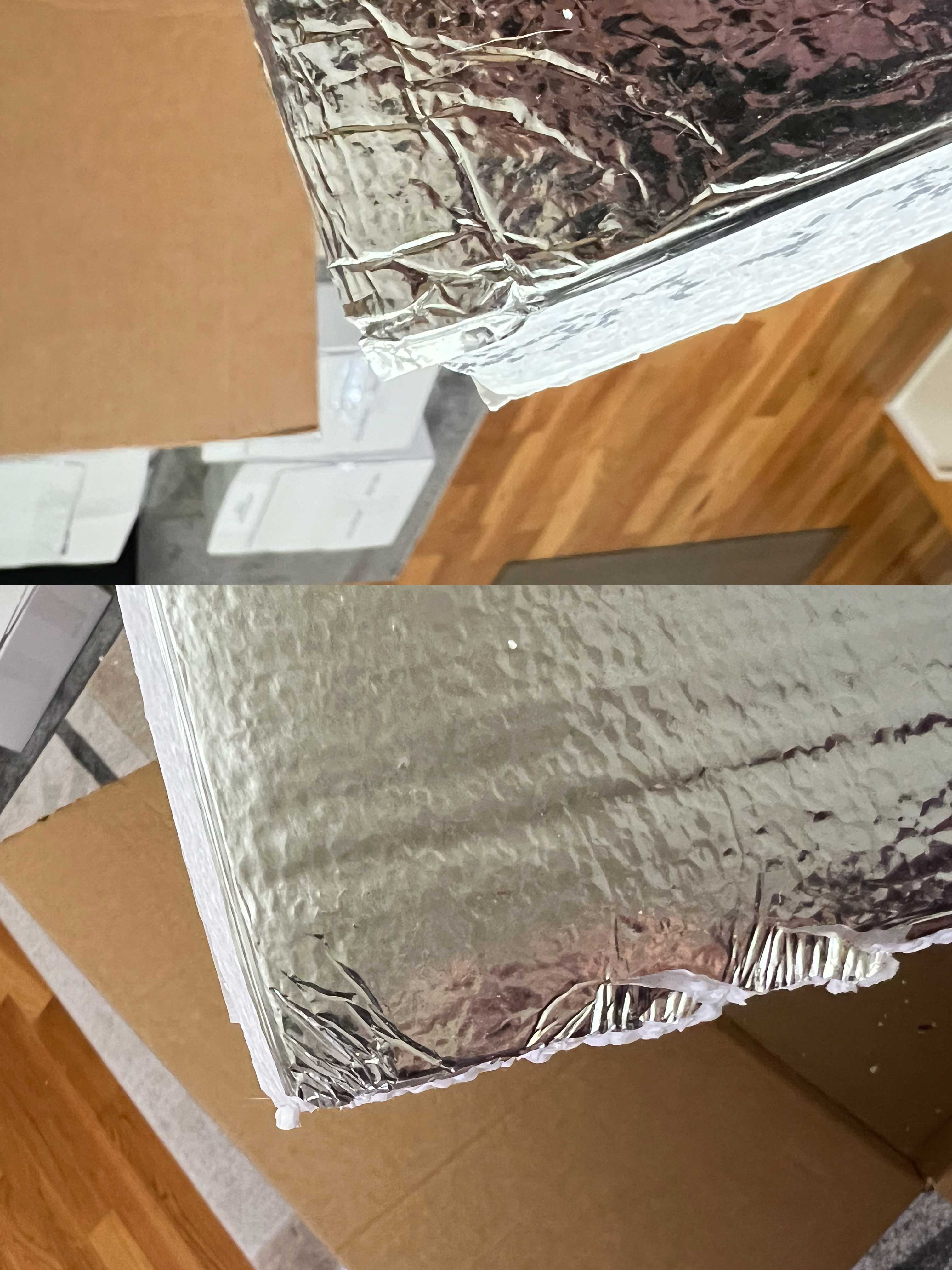 The deep indentation on the outside of the box did extend through to the inside, but because these were heavy duty double-walled boxes from my next employer if I switch careers to work at an Uline warehouse, the extent of the abrasion was minimal inside the box. Had the box not been as strong and had the foam insulation not been in place, things may have looked much different from the inside of the box.