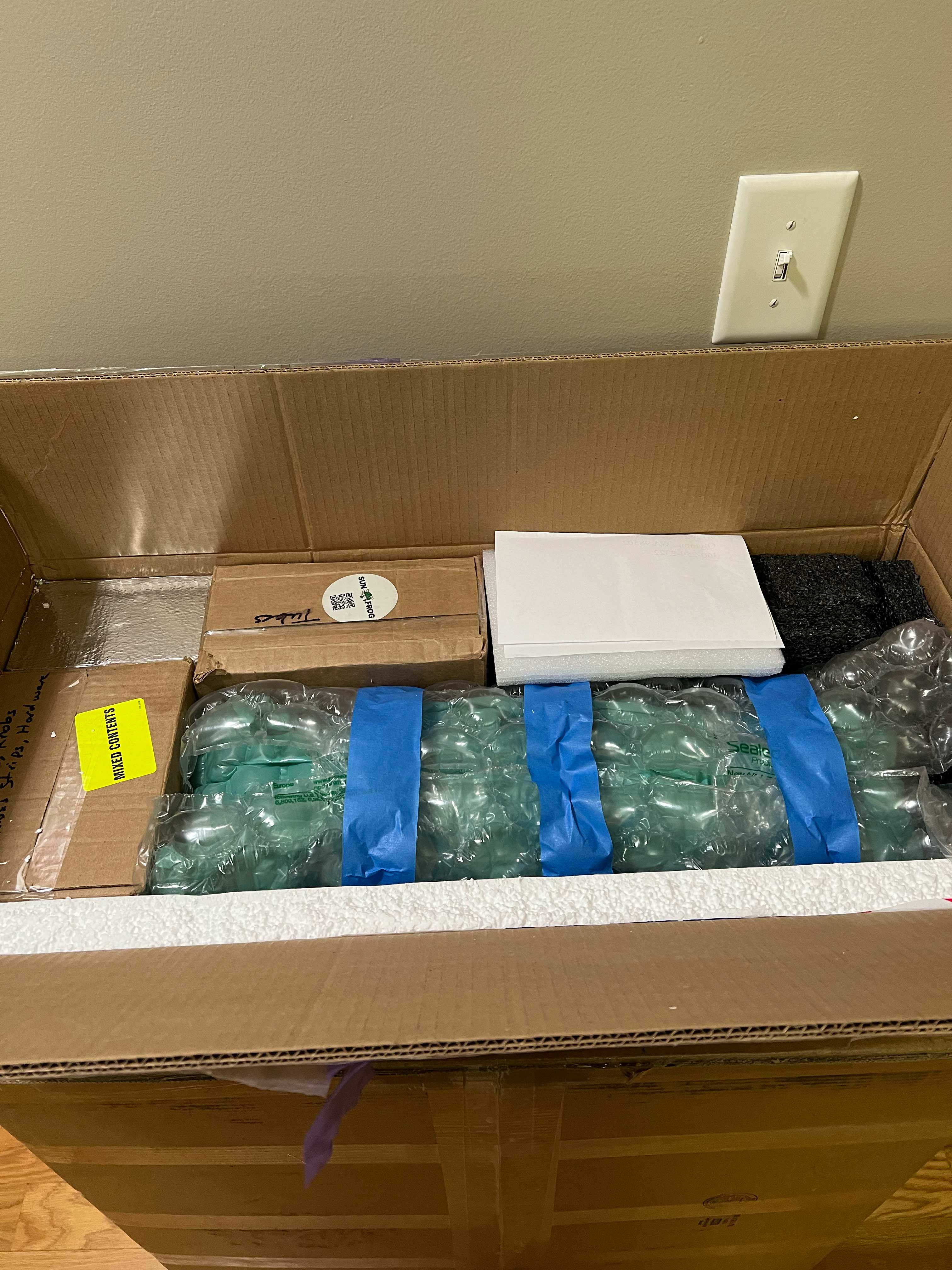 Remember that bits of styrofoam find their way everywhere. Foam packing peanuts can do the same thing. So just like when the speaker cabinet was boxed yet again to keep foam from getting everywhere, the chassis itself wasn’t just wrapped but was bagged in bubble wrap. The foam was everywhere else in the packaging: